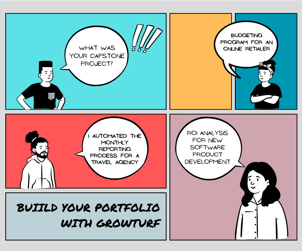 We design our capstone projects to help students create their professional portfolio and demonstrate their readiness for work to their stakeholders and prospective employers.